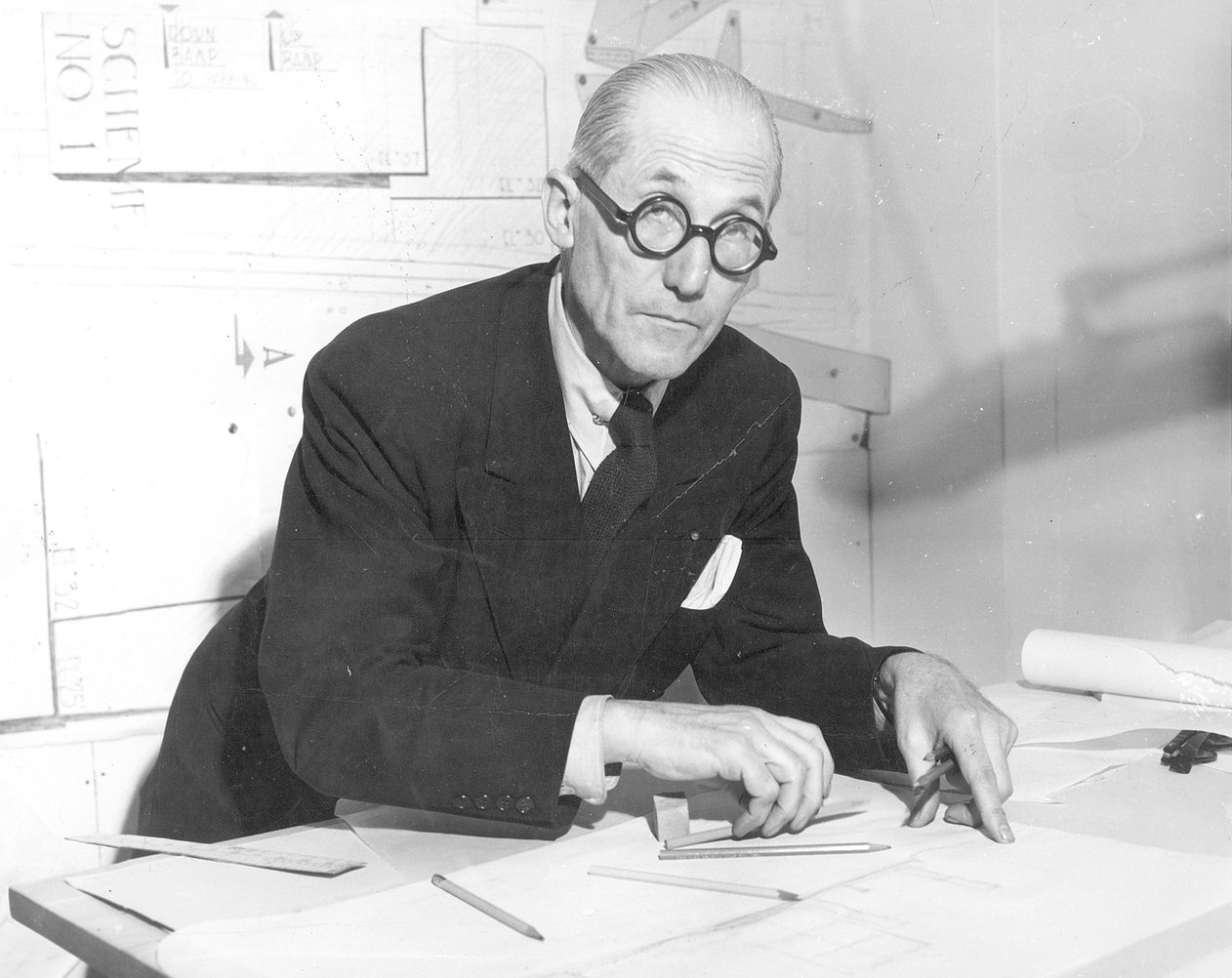 1928年、東京帝国大学工学部建築学科を卒業した前川國男は、卒業翌日にシベリア鉄道でパリへ渡り、ル・コルビュジエのセーヴル通りのアトリエに飛び込んだ。ル・コルビュジエに弟子入りした最初の日本人として約2年間を師の下で過ごし、サヴォワ邸の設計進行など、モダニズムの熱気を肌で吸収した。コルビュジエ財団のアーカイブには、前川が在籍中に50枚もの図面を手がけた記録が残されており、中には前川が書いた日本語のメモが読み取れるパースまで存在する。
